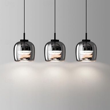 suspension led 3 couleurs lumière 16/116cm 1/3-lumière 16w verre style médiéval moderne lustre embout en verre abat-jour rond en verre luminaires suspendus pour salon salle à manger 220-240v