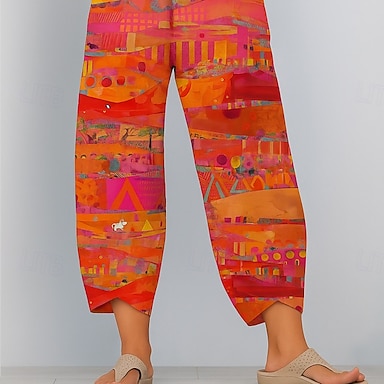 Femmes Slacks Pantacourt Vacances ancien Style Ethnique Longueur cheville Taille haute Graphique Abstrait Géométrique Cordon de serrage Patchwork Ceinture Élastique Confortable Respirabilité Doux Non