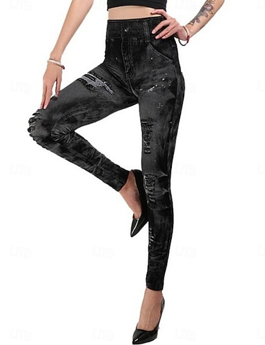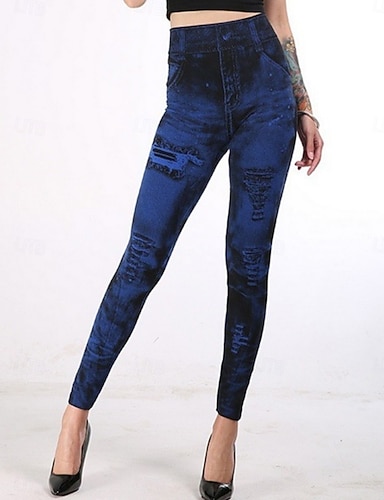 mode femme collants leggings cheville-longueur pantalon décontracté week-end extensible couleur unie contrôle du ventre bout à bout taille haute maigre bleu 2xl