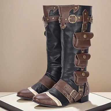 bottes hautes pour femmes avec sangles à boucle et design ample, avec talon moyen et style polyvalent pour une tenue décontractée et de soirée