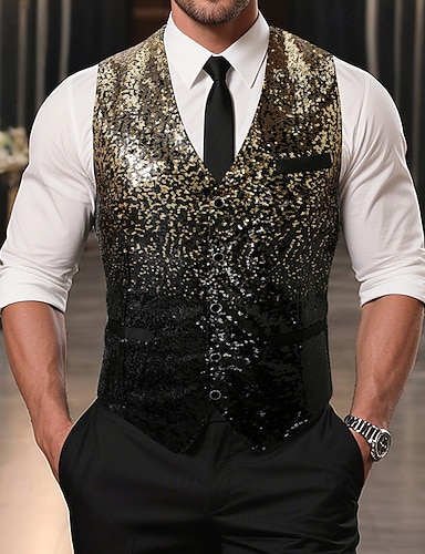 Homme Gilet Vacances Soirée Affaires Mode Occasionnel Printemps Automne Paillettes Boutons Polyester Confortable Graduelle Droit 1 bouton Col en V Coupe régulière Dorée Gilet