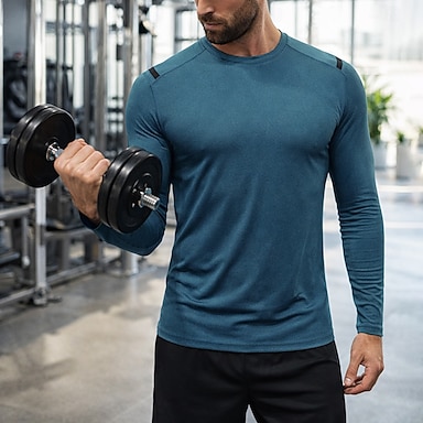 Homme Couleur Unie T-shirt de course T-shirt de compression T-shirt athlétique Haut de sport Printemps Automne manche longue Séchage Rapide Évacuation de l'Humidité Respirant Entraînement en salle