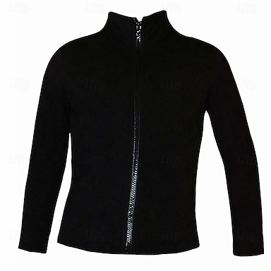 Vestes Polaires de Patinage Artistique Femme Fille Patinage Veste Top Noir Trou de pouce Elastique Entraînement Compétition Tenue de Patinage Chaud manche longue Patinage sur glace Patinage Artistique