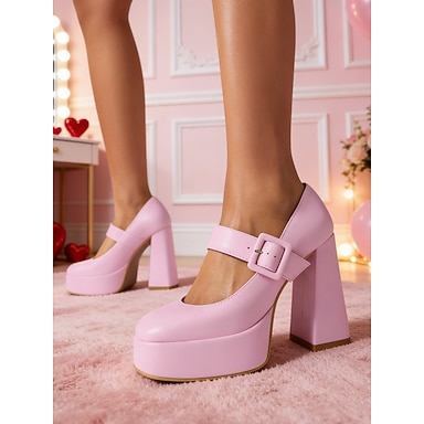 Escarpins roses à plateforme pour femmes avec bride à boucle – un style rétro chic pour la Saint-Valentin, les fêtes et les occasions spéciales