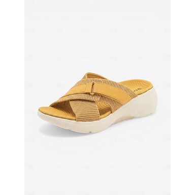 Sandales jaunes à enfiler pour femmes, sandales d'été à brides croisées réglables, chaussures décontractées confortables à bout ouvert pour les promenades estivales et les voyages. &tenue de toute la