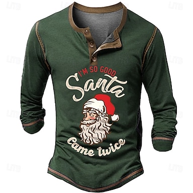 t-shirt de Noël t-shirt pour homme tee-shirt henley t-shirt lettre graphique henley vert clair vert vert / blanc impression 3D extérieur Noël manches longues boutonné imprimé vêtements vêtements de