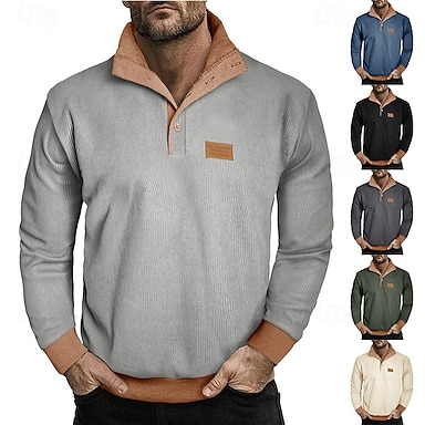 Homme Sweat-shirt Velours Côtelé Pull Sweat à capuche boutonné Abricot Noir Vert Véronèse bleu marine Gris Clair Col montant Uni Patchwork Bloc de Couleur Texturé Sport & Loisir Occasionnel Quotidien