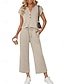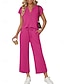 Femmes Ensembles de Pantalons Manche Courte Col en V Couleur Unie Élégant Mode Streetwear Affaires Bureau Travail Noir Vin Beige Été Coupe régulière