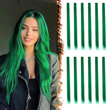 Parruques Vertes Extensions de Cheveux Verts Clip en - Extensions de Cheveux Verts Colorés pour Femmes - 22 Pouces 12 PCS Cheveux Colorés Droits Synthétiques