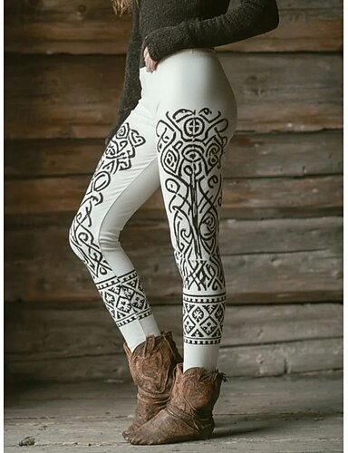 Femmes Leggings Leggings confortables Vacances ancien Style Ethnique Longueur cheville Taille haute Graphique Impression Confortable Élastique Occasionnel Quotidien Vacances Blanche Printemps Automne