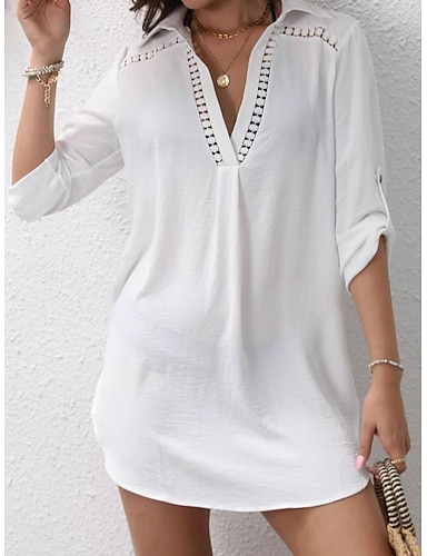 Femmes Mini Robe Robe Blanche Robe de Plage Vêtement couvrant Élégant Mode Classique Quotidien Extérieur Plage Coupe régulière Uni manche longue Col en V Blanche Été Printemps