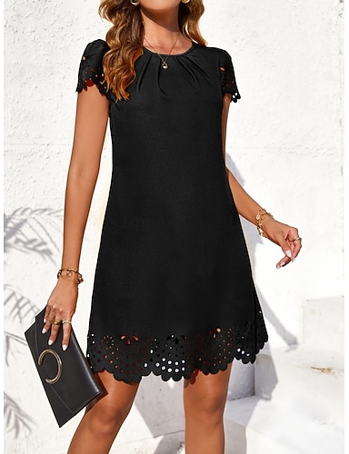 Ligne A Court Mini Robe de Soirée Robe d'invité de mariage Robes pour invités de mariage Quotidien Manche Courte Col ras du cou Formel robe demoiselle d honneur avec Plis Volants