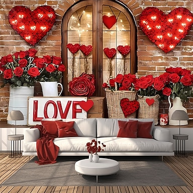 Saint Valentin tapisserie Bannières Couverture Rose Amour Cœur Mignon Romantique Moderne Soirée Salon Arrière-plans de prise de vue Décoration pour demande en mariage Décoration d'intérieur