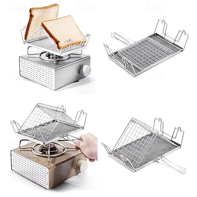 Grille-pain pliable en acier inoxydable, grill portable de camping, idéal pour les pique-niques et la randonnée, outil de cuisson, démontable et facile à nettoyer, idéal pour le camping en plein air