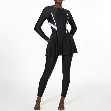 Femmes Rashguard intégral Robes de Natation Une pièce Patchwork Zip Up Protection UV Élastique manche longue Maillot de Bain Maillot de bain Surf Plongée en apnée Natation Printemps