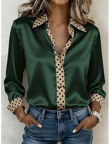 Femmes Chemise Chemise en satin Imprimé À pois Élégant Bohème ancien manche longue Col de chemise Hauts Réguliers Quotidien Fête Sortir Rose Claire Violet Vert Gris Été Printemps Automne