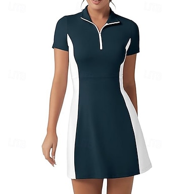 Femmes Bloc de Couleur Robe de tennis Robe de sport Séchage Rapide Élastique Respirant Tennis Athlétique Course Col zippé Robe Noir Blanche Rose Vêtements de tennis