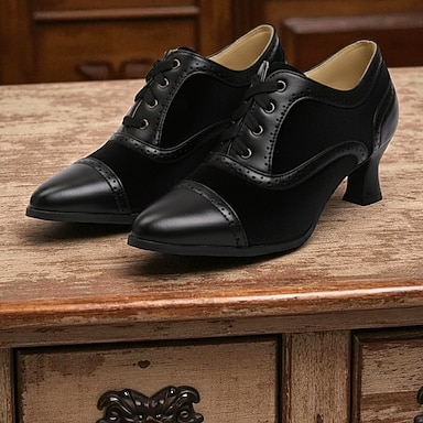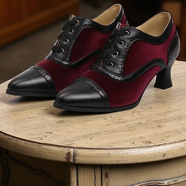 Escarpins vintage à lacets en velours noir et bordeaux pour femme – style édouardien des années 1920, parfaits pour les occasions formelles, les goûters et le quotidien