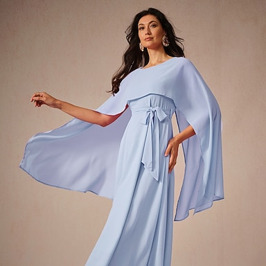 Robe de fête en A longueur de cheville robe cocktail robe invitée au mariage robe mère de la mariée manches ¾ col ras du cou élégante vintage formelle avec couleur unie