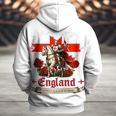Homme Drapeau UK Sweat à capuche Sweatshirt Sports Mode manche longue Col ras du cou Extérieur Bureau Vêtements de rue Noir Blanche Rouge Bleu Cordon de serrage 3D Automne Hiver Designer S M L XL XXL