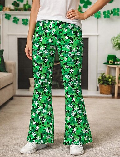 Saint-Patrick 2026 Rétro Vintage Années 1970 Pantalon Pantalons à pattes d'éléphant Hippie Disco Taille haute Déguisement Femmes Fête de la Saint-Patrick Soirée Festival Adulte Pantalon