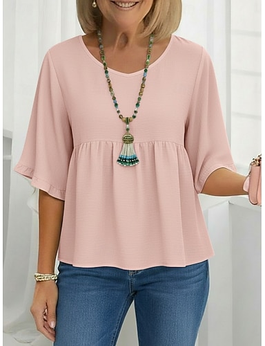 Femmes Chemise Chemisier Froncé Uni Actif manche longue Col en V Hauts Réguliers Quotidien Fête Sortir Noir Blanche Vert Claire Rose Claire Bleu Ciel Été Printemps