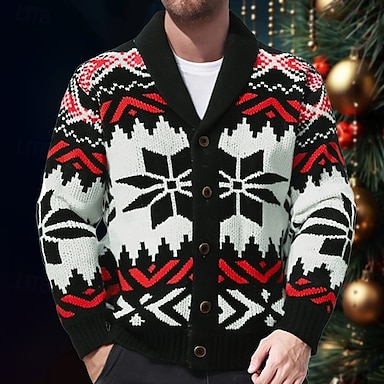 Homme Pull Jacquard Gilet Cardigan Pull court Pull en tricot A côtes Crocheté Tricoter Normal Tricoté Jacquard Motif de flocon de neige Col Châle Mode Classique Usage quotidien Rendez-vous Vêtement