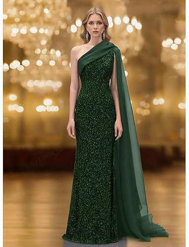 Sirène / Trompette Traîne Balayage Robes de Bal Robe de Soirée Tenue de soirée Élégant Scintillant Éclat Sans manches Une Épaule Formel Mariage Organza Pailleté avec Paillettes