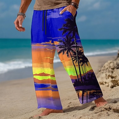 Homme Cocotier Nature et paysages Plantes Tropicales Pantalons Pantalon décontracté Pantalons Amples Taille Moyenne Hawaïen Vacances Taille élastique avec cordon de serrage Pantalon en lin avec poches