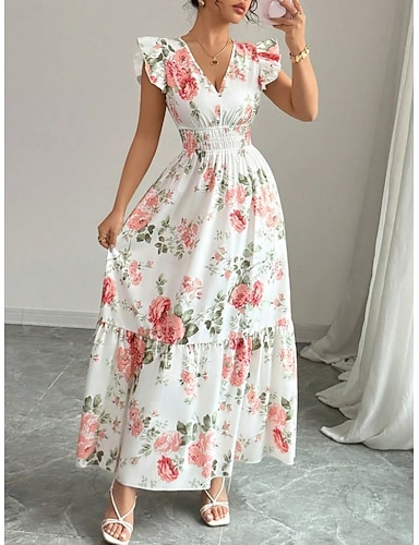 Ligne A Longueur cheville Robe de Soirée Robe de Cocktail Robe d'invité de mariage Robes pour invités de mariage Élégant Quotidien Sans manches Sans bretelles Fête de jardin Mariage avec Fleurs 3D