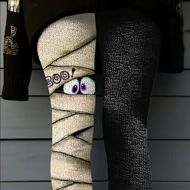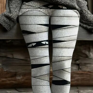 Leggings pour femmes Vacances Mode vintage Longueur complète Taille haute Graphique Impression Tête de mort Thermique Chaud Doux Respirant Extensible Formelle Extérieur Vacances Noir Blanc Printemps