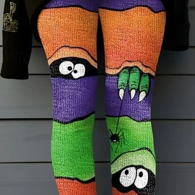 Leggings pour femmes Vacances Mode Vintage Pleine longueur Taille haute Pantalons Graphique Imprimé abstrait Thermique Chaud Doux Respirant Élastique Formelle extérieure Vacances Orange Blanc Blanc