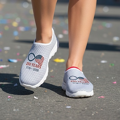 Baskets bleues patriotiques pour femmes – chaussures de marche légères et respirantes ornées du drapeau américain et d'un motif graphique commémorant 250 ans d'histoire, idéales pour une tenue