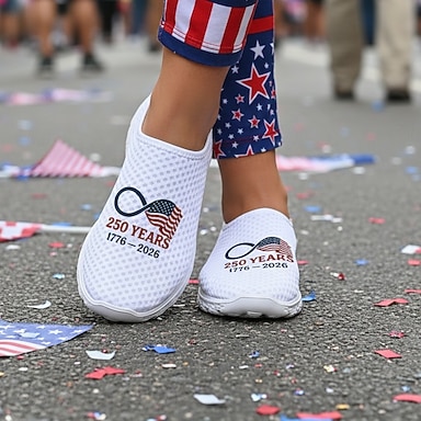 Ballerines patriotiques USA 250 pour femmes - Chaussures confortables en maille rayée bleue et blanche avec détail étoile pour la fête de l'indépendance américaine et les défilés &vêtements de
