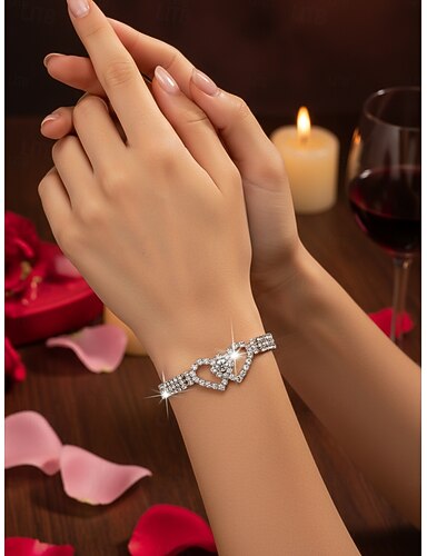 Bracelet cœur en strass étincelant pour femme - design élégant à maillons en cristal, bijou de poignet délicat et raffiné pour les fêtes et les soirées &événements spéciaux