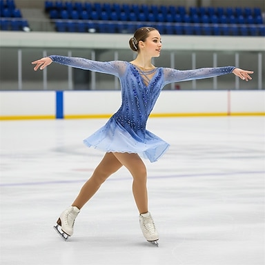 costumes de patinage artistique pour adultes et enfants costumes de performance de classement en maille spandex bleu personnalisés jupes pour femmes en strass costumes de performance d'entraînement de