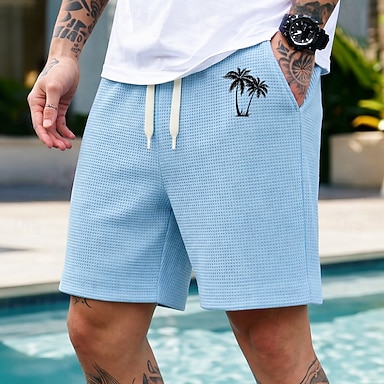 Homme Cocotier Plantes Tropicales Short gaufré Shorts de survêtement Short décontracté Taille Moyenne Mode Décontractée Vacances Jogging Entraînement Taille élastique avec cordon de serrage Short