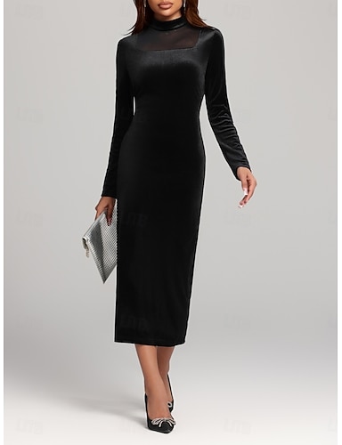 Robe Fourreau Colonne Longueur Sol Longueur Cheville Robe de Fête Robe de Cocktail Robe d'Invité de Mariage Robe de Mère de la Mariée Manches Longues Col Carré Élégante Vintage Fête Formelle Velours