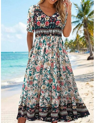 Robe de Soirée A-Line Élégante Robe Formelle Mariage Longue au Sol Manches Courtes Décolleté en V Tulle avec Imprimé Floral