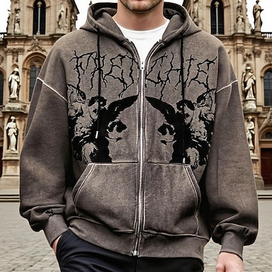 Homme Graphique Sweat à capuche Mode Quotidien Occasionnel manche longue À capuche Extérieur Vacances Vêtements de rue Noir Blanche Café Zip Up Avec Poches Impression Printemps Automne Designer S M L