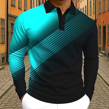 Homme Dégradé Géométrique Polo manche longue Polos Revers Occasionnel Rue Athleisure Tenue quotidienne Impression 3D Boutons Printemps Automne Hiver Bleu Clair Jaune Rouge