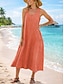Femmes Robe maxi Robe d'Été Robe d'été Occasionnel Quotidien Coupe Ample Uni Sans manches Col en U Orange Été