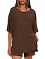 Femmes Ensembles deux pièces Ensembles de Shorts Manche Courte Col rond Uni Mode Streetwear Occasionnel Quotidien Extérieur Noir Marron Été Coupe régulière