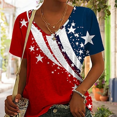 T-shirt patriote pour femmes - impression graphique drapeau stylé classique décontracté à manches courtes col rond col en V hauts réguliers quotidiens bleu bleu marine rouge bleu été printemps