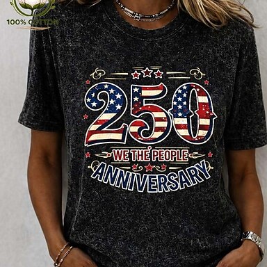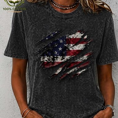 Jour de l'Indépendance Américaine Femmes T-shirt Imprimé Graphique Drapeau Lettre ancien Mode Élégant Manche Courte Col ras du cou Col rond Hauts Longs Occasionnel Quotidien Week-end Noir Blanche