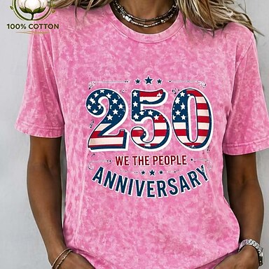 T-shirt pour la fête de l'indépendance américaine 100% coton pour femme imprimé graphique drapeau élégant basique classique à manches courtes col rond régulier sortant au quotidien bleu noir rose