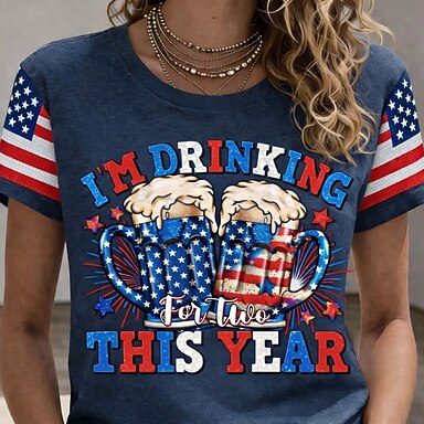 T-shirt pour femme patriote américaine pour le Jour de l'Indépendance Anniversaire Impression Graphique Lettre Drapeau Américain Vintage Élégant Classique Manches Courtes Col Ronde Hauts Quotidien
