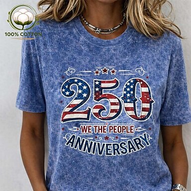 Jour de l'Indépendance Américaine Femmes T-shirt Imprimé Graphique Drapeau Lettre ancien Mode Élégant Manche Courte Col ras du cou Col rond Hauts Réguliers Occasionnel Quotidien Week-end Bleu Blanche