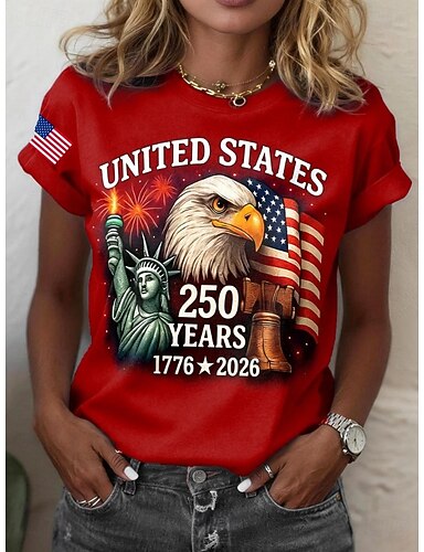 Jour de l'Indépendance Américaine Femmes T-shirt Imprimé Graphique Drapeau Élégant Classique Occasionnel Manche Courte Col ras du cou Col rond Hauts Réguliers Quotidien Blanche Rouge Rouge / Bleu Ét