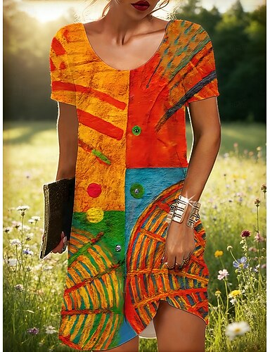 Femmes Mini Robe Robe bohème Robe Décontractée Robe T-Shirt ancien Quotidien Extérieur Vacances Coupe régulière Graphique Multicolore Manche Courte Col ras du cou Rouge Été Printemps